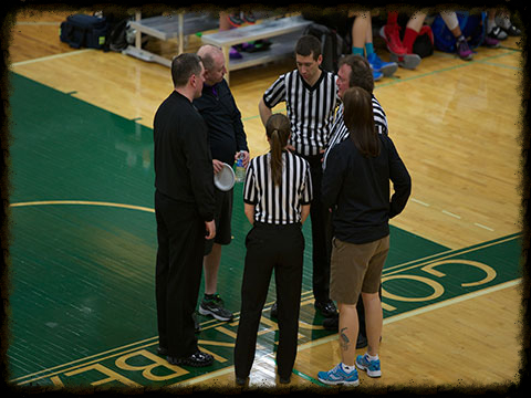 COURT ATTIRE - Full uniform, including black pants, gray or striped jersey, black socks and black shoes.
